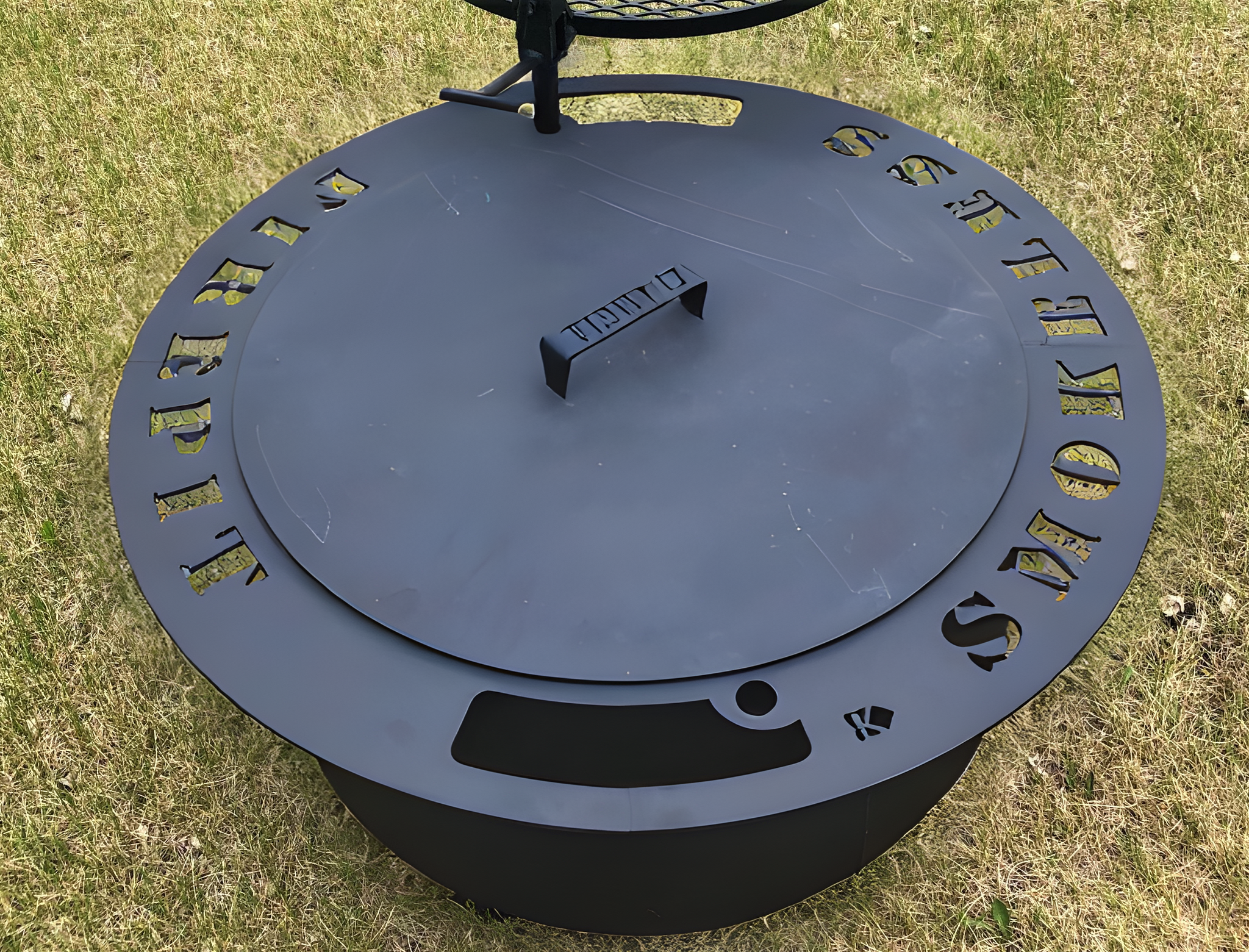 The Metal Fire Pit Lid is a versatile and essential accessory for any outdoor fire pit. Its primary function is to protect from rain, wind, and debris, but it also serves as a convenient coffee table for placing food and drinks when the fire is not lit. Additionally, it has the ability to promptly and efficiently put out flames as needed.
