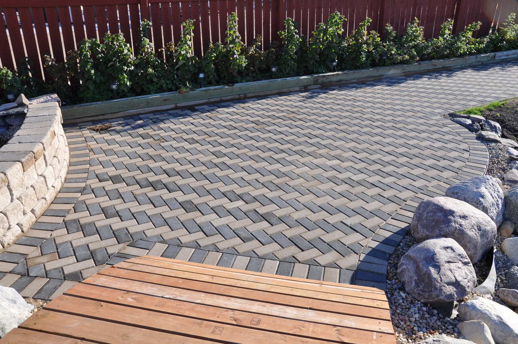 A simple brick shape combined with the renowned durability of interlocking concrete pavers.