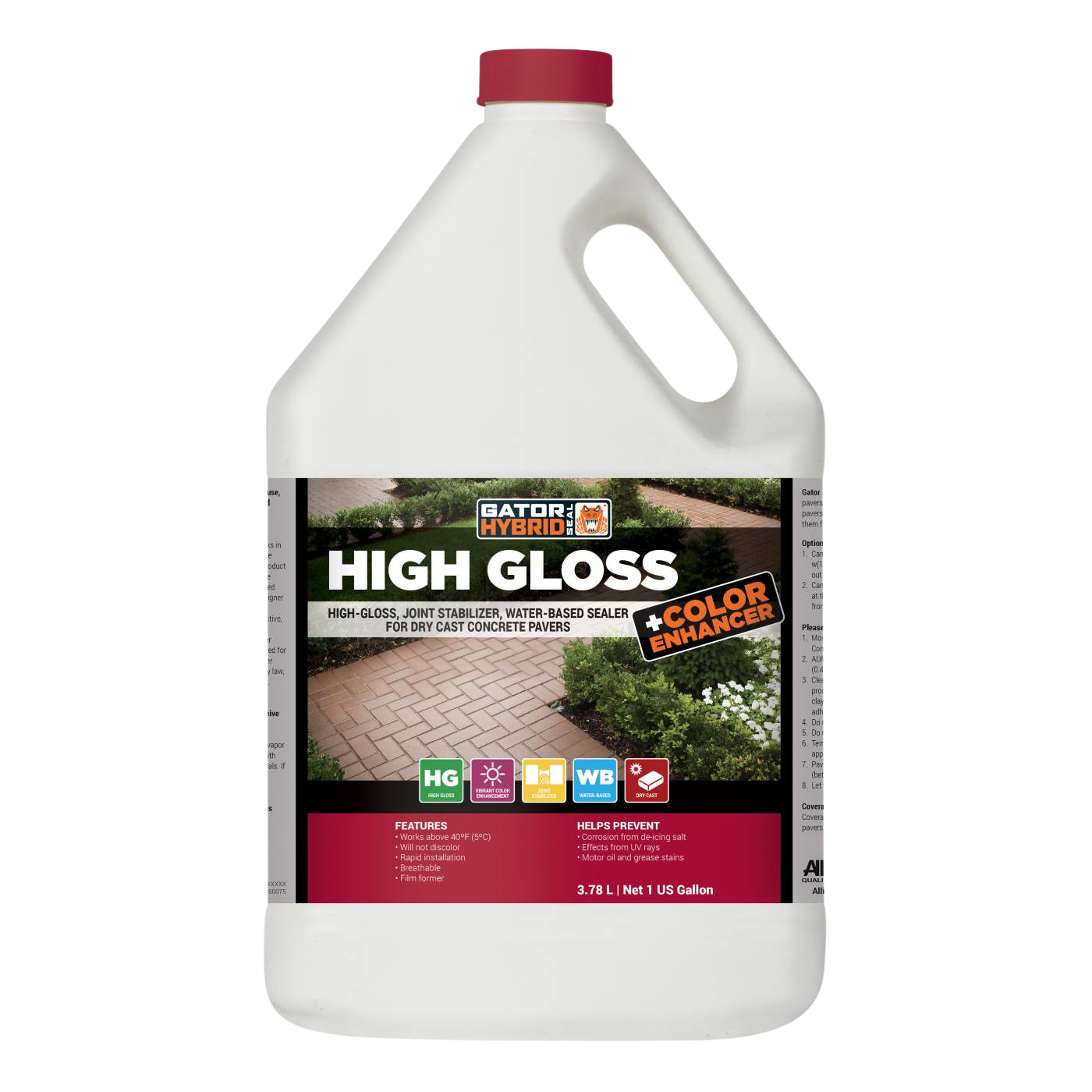 HYBRID SEAL HIGH GLOSS WITH COLOUR ENHANCER is made from 100% pure, high-grade acrylic and is designed to seal concrete pavers. It penetrates deep into the pores of the concrete, helping to prevent oil and dirt penetration, corrosion from de-icing salts, and damage caused by UV rays.