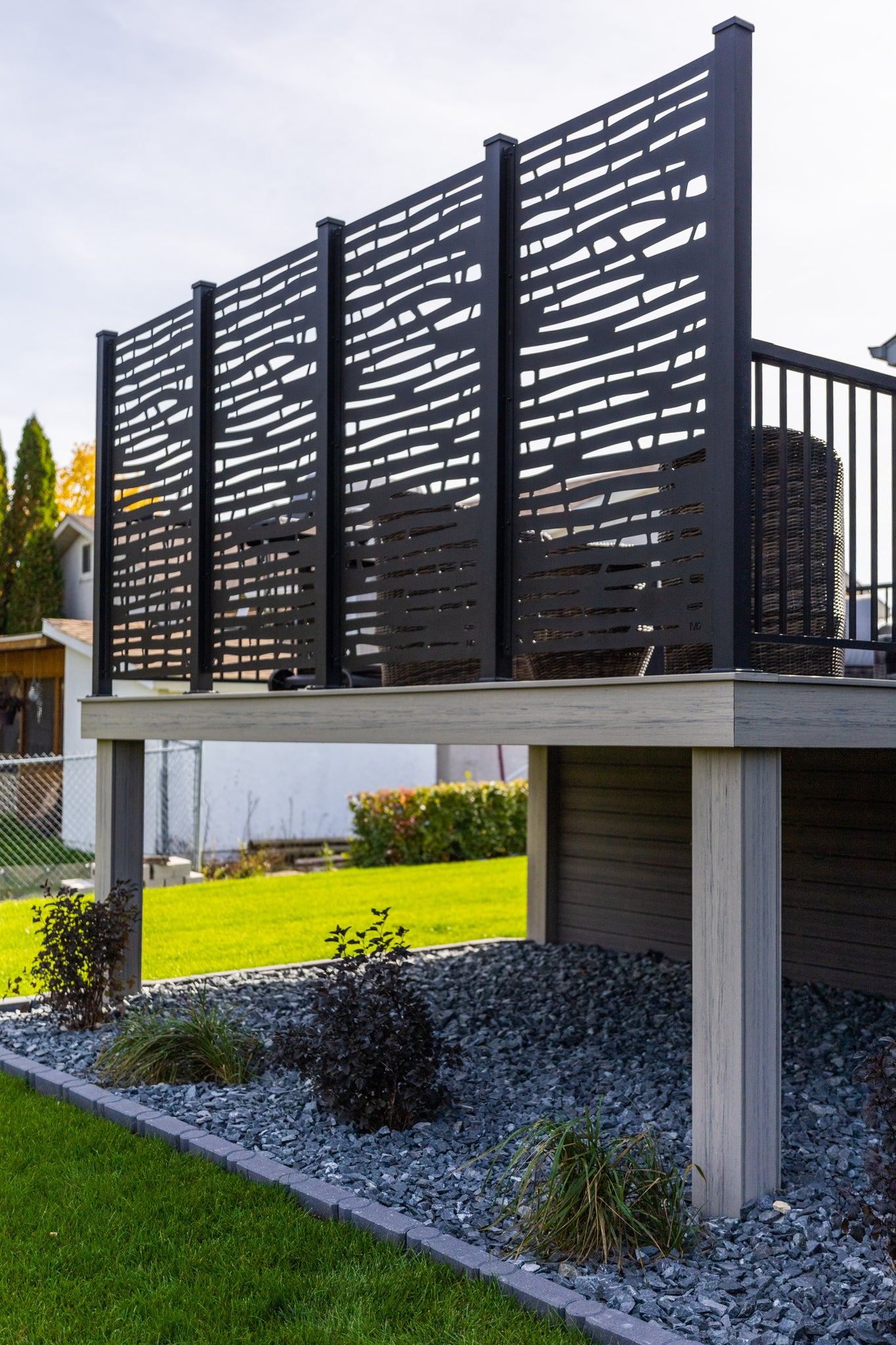 Our powder-coated aluminum screens provide privacy and enhance the design of your living space.